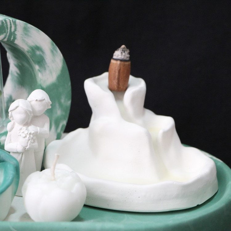 دارای جای عود آبشاری ، دو عدد شمع معطر ، و یک عدد گلجا گرد
